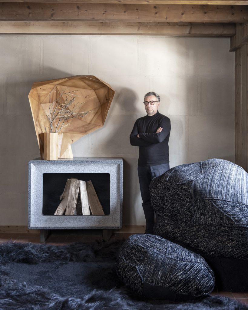 Architecte DPLG, architecte d’intérieur, designer et scénographe, il intègre sa sensibilité à la Nature dans chacun de ses projets – hôtels, appartements privés, châteaux, chalets ou pièces uniques.