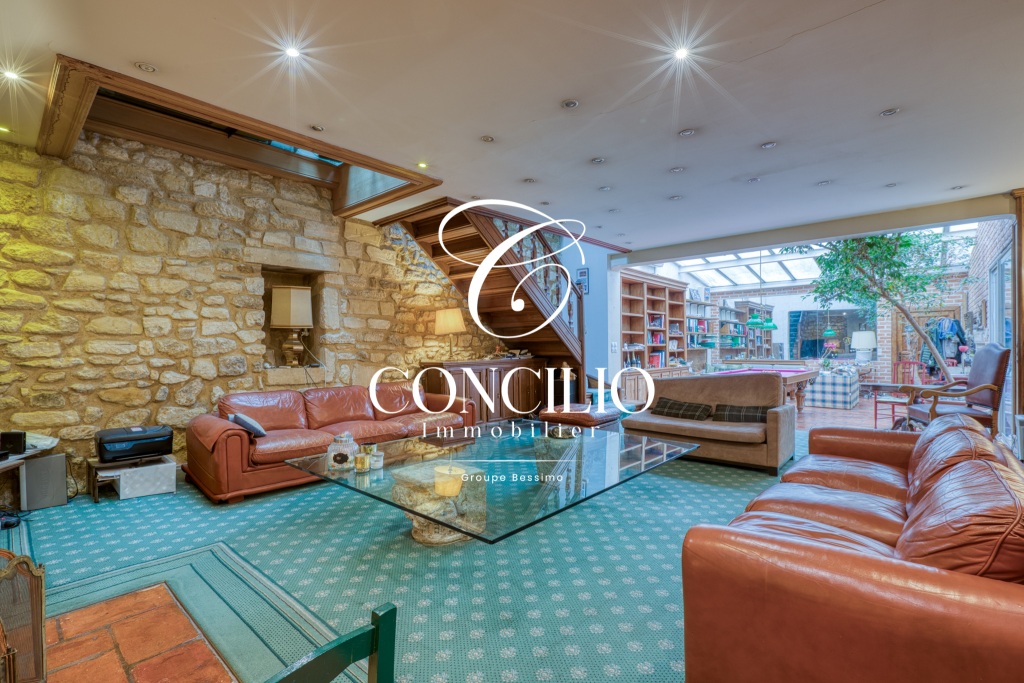 Au calme d’une cour intérieure, elle offre au rez-de-chaussée un vaste séjour traversant avec cheminée, une salle à manger, un salon ainsi qu’un espace billard, complétés par une cuisine ouverte entièrement équipée avec bar Brochure_86730646.